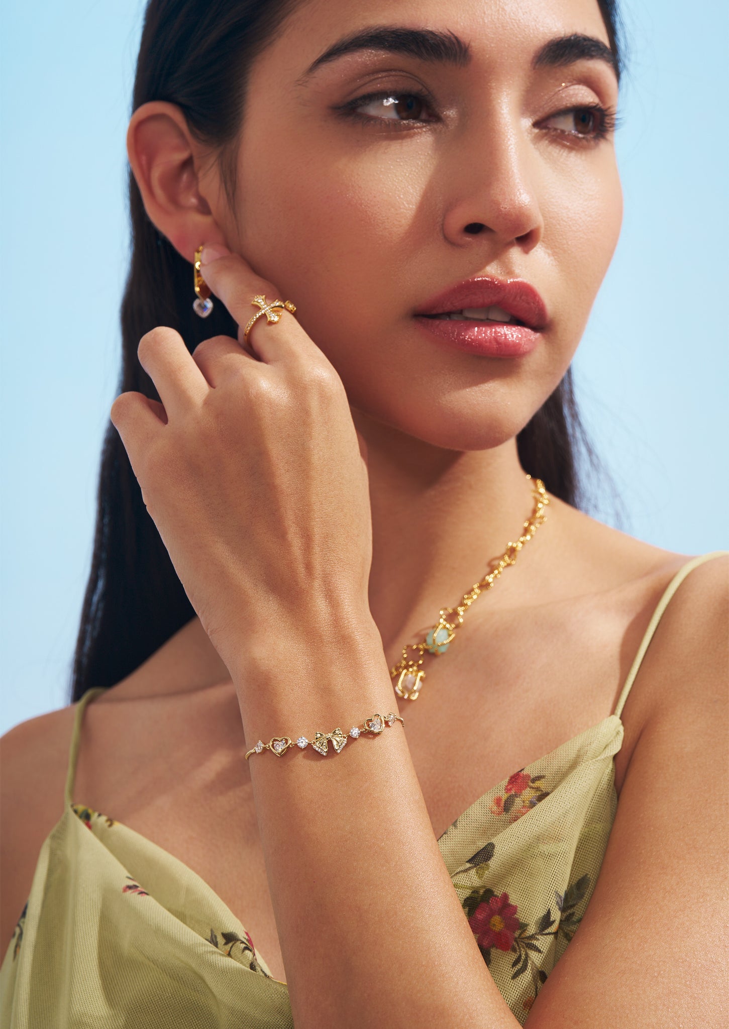 Heart Bow Charm Bracelet